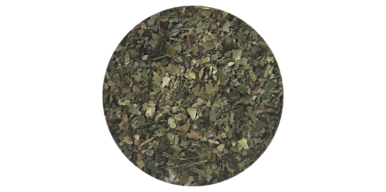 Hand-picked leafs, that are organic grown in jungle gardens called "Chakras".